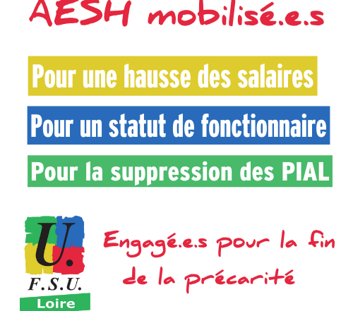 En ce début d'année, la FSU Loire organise deux stages à destination des AESH : à l'INSPé de Saint-Etienne le jeudi 19 octobre de 9h à 16h. à la Bourse du travail de Roanne le[...]